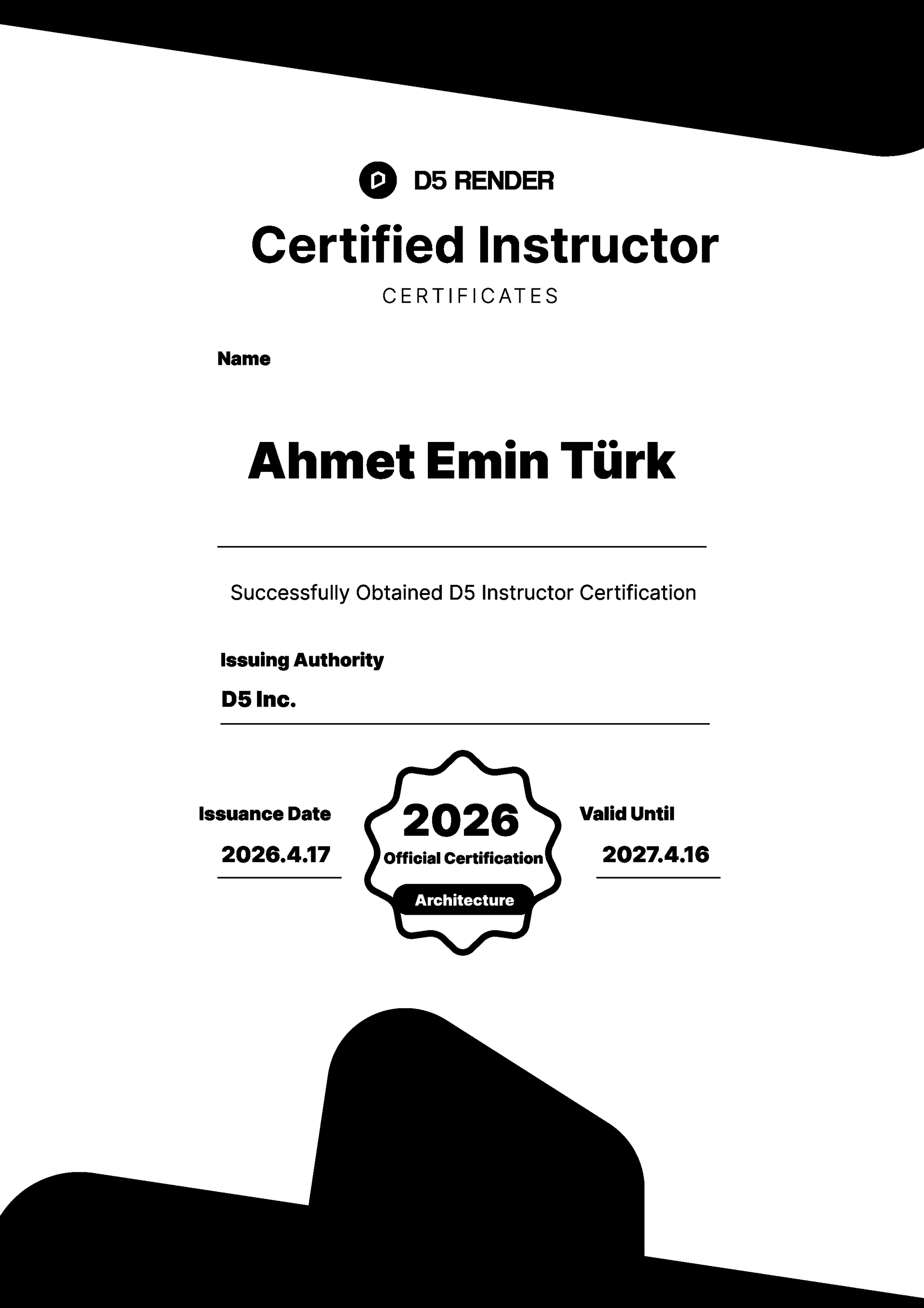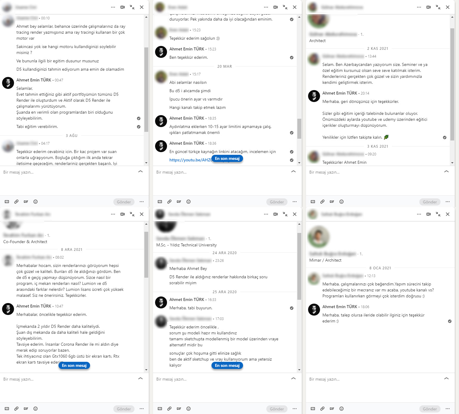 Kalite odaklı yaklaşımım, D5 Render’ın resmi platformlarında uluslararası takdir gördü; bu da detaylara gösterdiğim özeni ölçülebilir şekilde ortaya koyuyor.