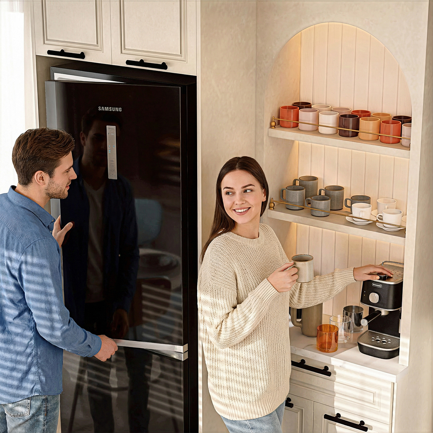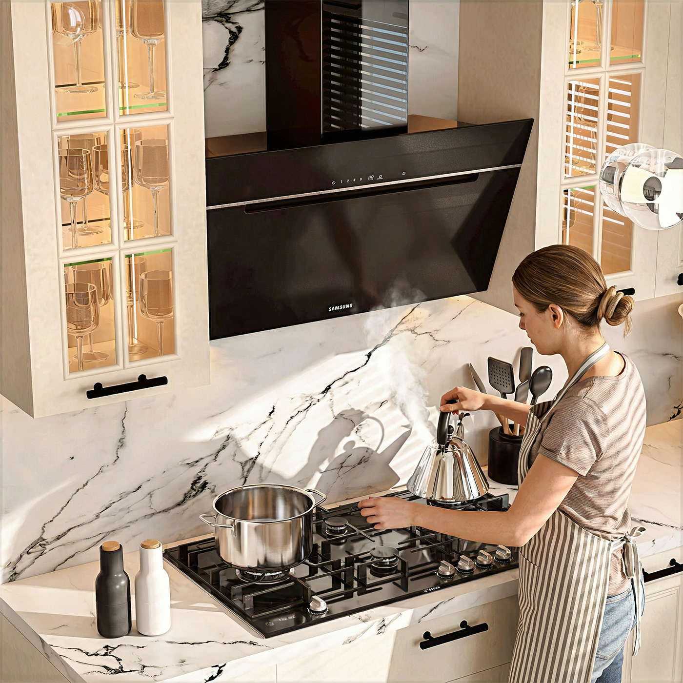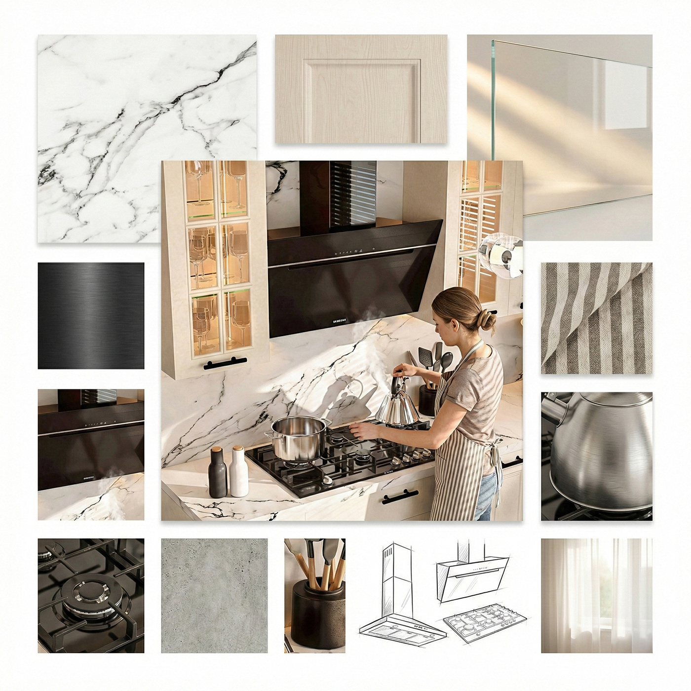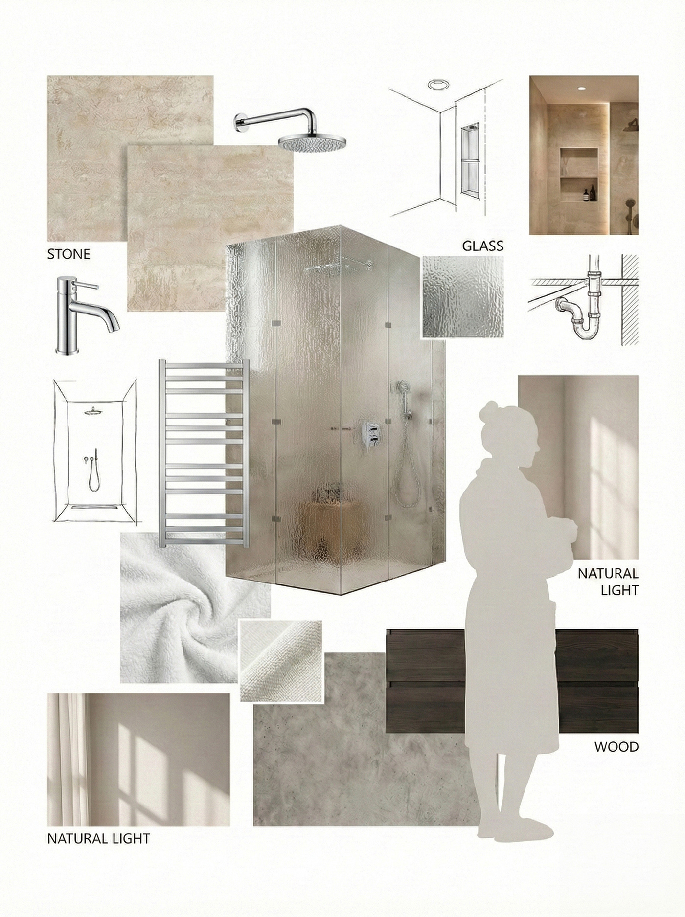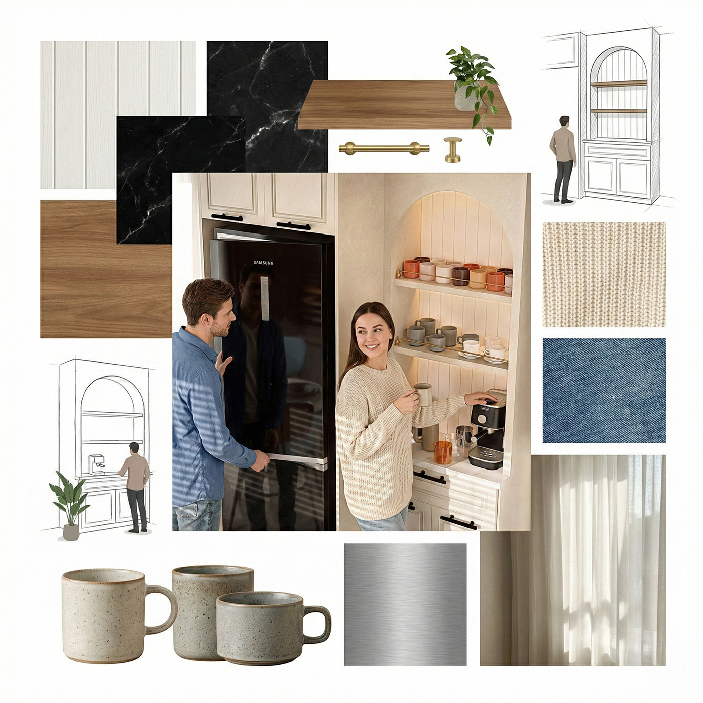 Villa Exterior/Interior Design The project embodies a contemporary architectural language defined by dynamic massing, cantilevered volumes, and a refined interplay of concrete, metal, and wood. Deep eaves with wooden soffits enhance thermal comfort while enriching the facade’s warmth. The landscape blends hardscape and softscape with a sunken fire pit, circular geometry, and subtle night lighting for a cohesive outdoor experience. Interiors feature herringbone wood flooring, slatted wall panels, and iconic furniture selections that emphasize tactile materials such as marble, leather, and bouclé. Concealed lighting and linear fixtures accentuate architectural lines, while the kitchen’s seamless Calacatta surfaces and built-in elements reflect functional elegance. In private spaces, wood–marble combinations, floating vanities, and minimal details create visual harmony, culminating in a spa-like bathroom atmosphere defined by warm lighting and natural stone textures.
